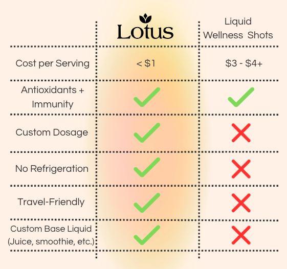 Our wellness shot powder delivers all the benefits of liquid shots with key advantages